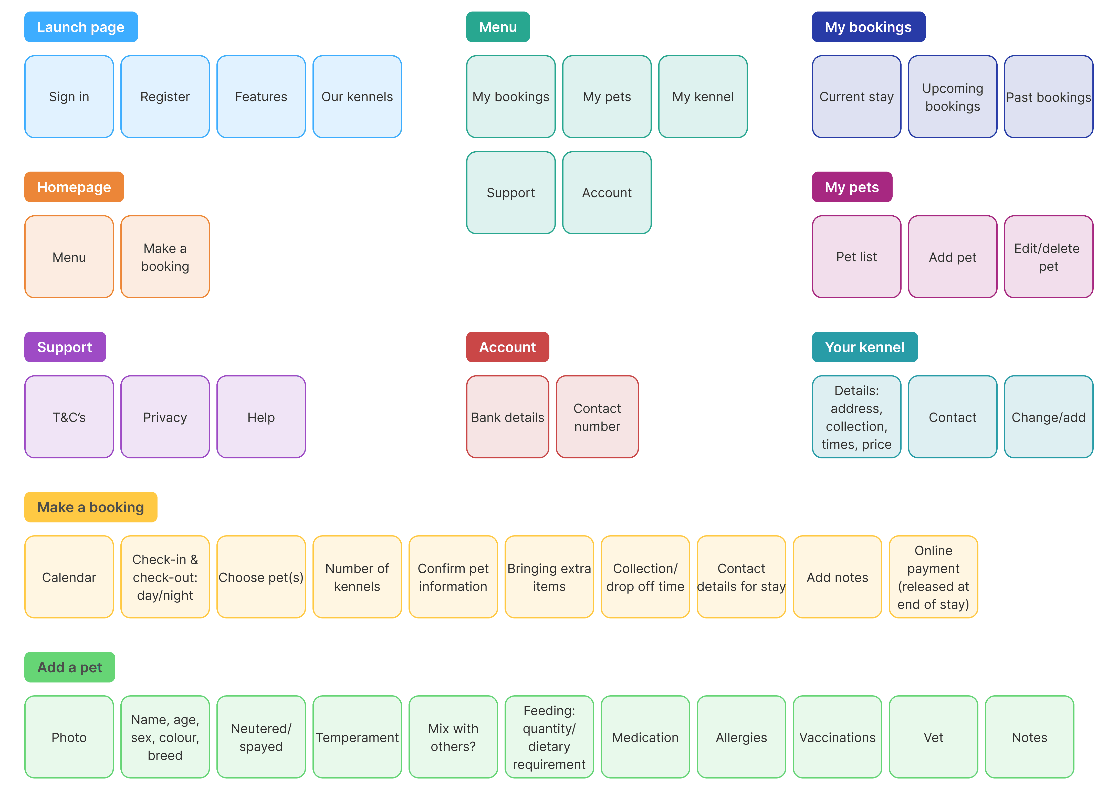 I interviewed customers and workers at the kennel to find out more about the current booking system, which included discovering pain points which were areas to focus on. The key findings are below.